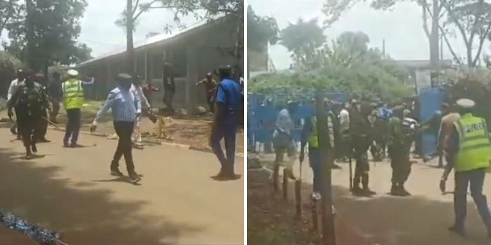 In the videos seen by Kenyans.co.ke, armed police officers were recorded attempting to block the youth from accessing the institution, with the officers seen beating some of them up.