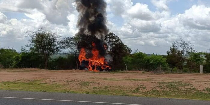 A photo of a vehicle on fire along the Kibwezi-Kitui road on November 18, 2025.