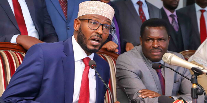 Wajir Governor and Council of Governors chairperson Ahmed Abdullahi addressing the media on May 19, 2025.