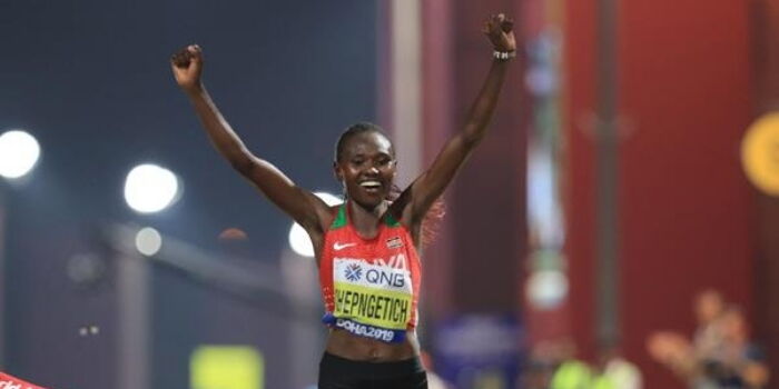 Brigid Kosgei is a world marathon record holder while Hellen Obiri is a world cross-country and 5000m champion.