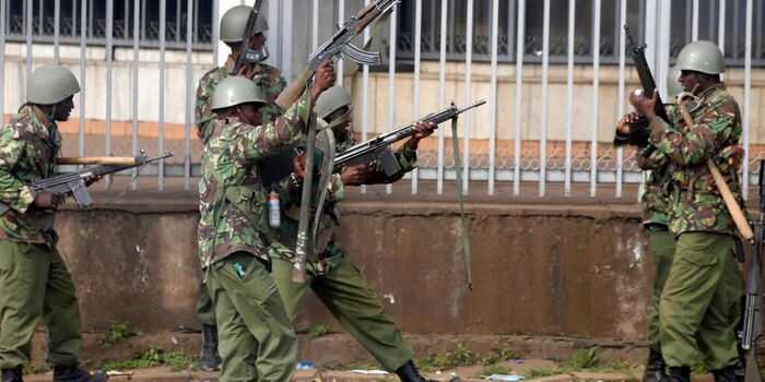 Police lob tear gas to disperse rowdy crowds in Kondele, Kisumu County on November 10, 2021