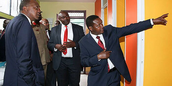 President Uhuru Kenyatta (left) and Machakos Governor Alfred Mutua (far right) in the company of other dignitaries.