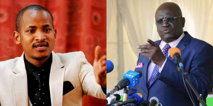 Embakasi MP Babu Owino (left) and Education Cabinet Secretary Professor George Magoha (right).
